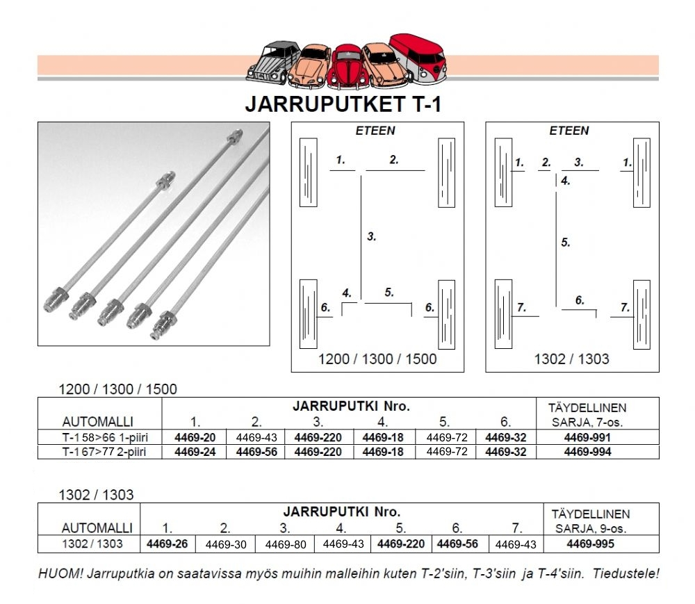 Ajoneuvokohtaisesti mitoitetut jarruputkisarjat klassisiin ilmajäähdytteisiin Volkswageneihin.
