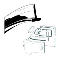 Sisäpuolinen ovilasitiiviste kiinnikkeineen, oikea