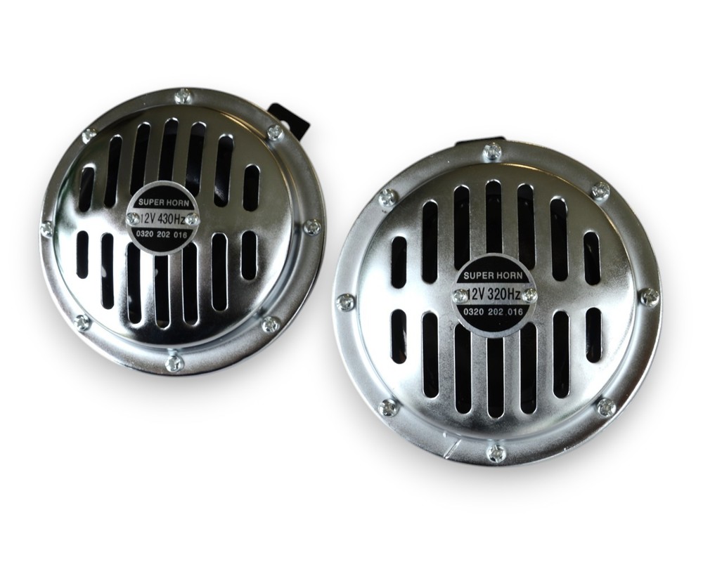 - 12V kromattu – erittäin siisti, näyttävä pinta 12V äänimerkkipari (kromattu) – matala ääni 320 Hz, korkea ääni 430 Hz Täydellinen ratkaisu, kun halutaan autenttinen kaksisävyinen "Bosch-äänimerkki"