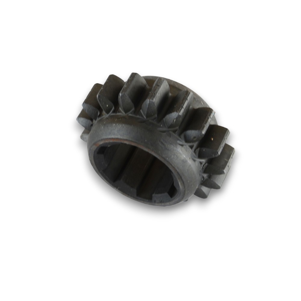 Tämä osa on vaihteiston 1.–2. vaihteen kytkentärengas (Sliding/Operating sleeve). Se on liukuva “rengas”, joka kytkee 1. tai 2. vaihteen valinnan mukaan. Kulunut kytkentärengas voi aiheuttaa huonoa kytkeytymistä, rutinaa ja vaihteen pois hyppimistä erityisesti kuorman alla.