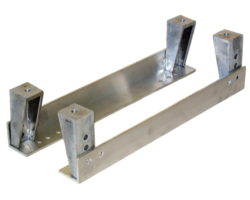 Alumiiniset sivukiinnitysraudat. Saatavana matalana tai korkeana mallina.
